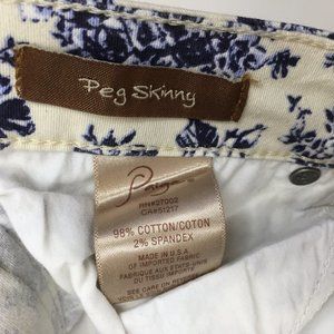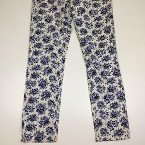 PAIGE Blue White Floral Print PEG 5 Pocket Logo Hardware Skinny Jeans