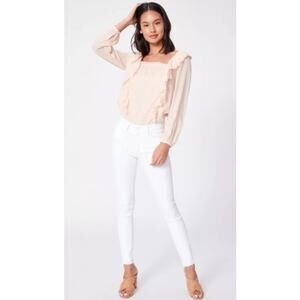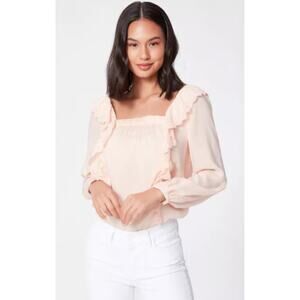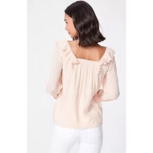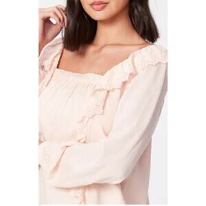 This sweet boho top is effortlessly chic with an embroidered square neckline, crocheted ruffle trim and a button-keyhole back detail. Crafted from lightweight rayon, this dreamy blouse is airy but not see-through thanks to the lining. We recommend tucking it into your favorite high-waisted denim.