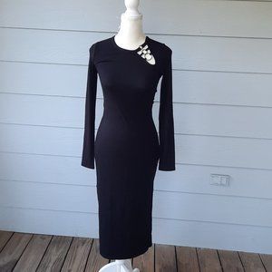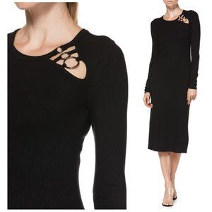 NWT Paige Caelan Ribbed Midi Dress in black. An eye-catching neckline cutout emboldens this shapely midi styled with flattering ribbing and a soaring side slit. Open to questions and offers!