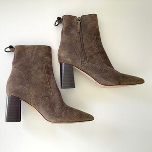 PAIGE Callan Distressed Brown Pointed Toe Ankle Block Heel Boot Size 10