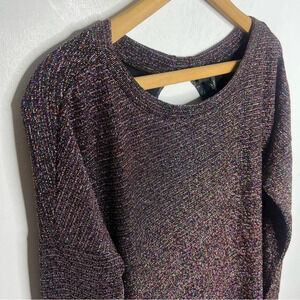 PAIGE Celeste Open Back Lurex Striped Metallic Weave Long Sleeve Shirt