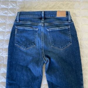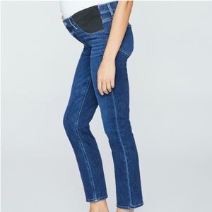 PAIGE Cindy maternity jeans. Classic straight leg cropped denim. Perfect for casual wear. Side elastic panels.