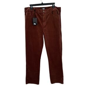 PAIGE Cindy Mid Rise Slim Straight Micro Corduroy Pants brown size 34 NEW