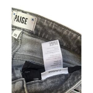 PAIGE Claudine High Rise Crop Flare Jeans | Washed Gray Black Raw Hem | Size 25