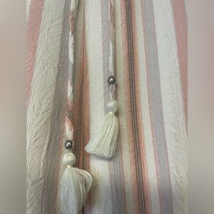 Cut from breezy striped viscose, the light and airy Natchez Pant is warm weather-ready. This ankle length style is fully lined and has a comfortable elastic waistband with a chic tassel tie. Wear yours with a simple white tee or a boho summer top