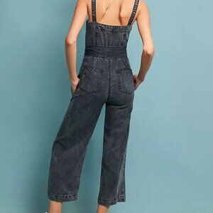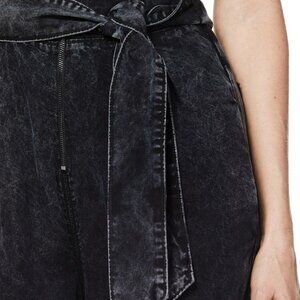 This PAIGE soft denim jumpsuit is so flattering! You can dress it up, layer it, or wear on it's one for a fun and flirty look! The straps are adjustable, the front has a zipper, and there's a matching sash to tie at the waist. It's very gently worn.