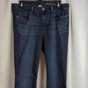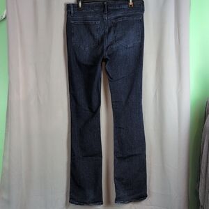 Stylish dark blue flare jeans. Perfect for a modern look.
