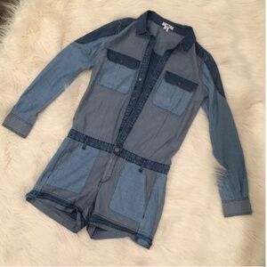 PAIGE Demin Blue Long Sleeve Romper w/ pockets - M