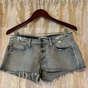 PAIGE Distressed Cut Off Jean Shorts Light Wash Button Fly