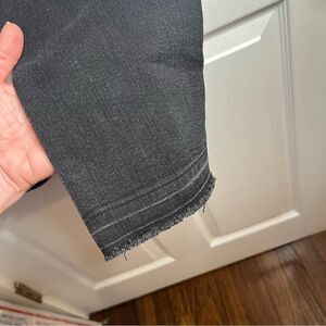 PAIGE Dylan Straight Undone Jeans Frayed cut off cuffs Ankle length Foggy Night Faded Black Denim Size 25. High waist. 5 pocket design. skinny straight. Button zip closure. Frayed hem. slightly distressed. Gently used Good Preowned condition. No holes stains or stretching.