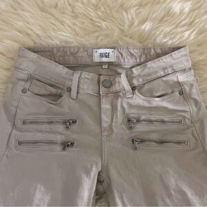 PAIGE Edgemont Front Zippers Tan Khaki Ankle Jeans
