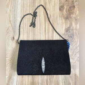 PAIGE GAMBLE BLACK STINGRAY & Accentuated With BLUE PYTHON CLASSIC CLUTCH