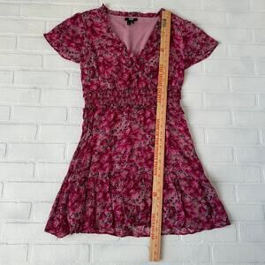 PAIGE Giannina Pink Floral Print Fit and Flare V neck Silk Dress sz M