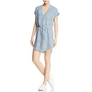 PAIGE Haidee Shift Drawstring Dress in White / Bluebell Stripe S