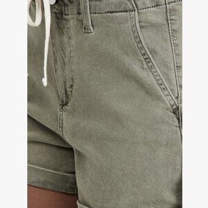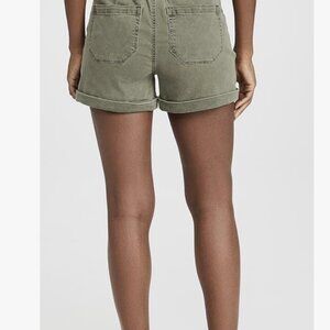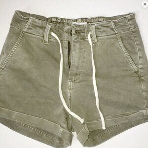 PAIGE “Harper” Utility Green Denim Drawstring Shorts | Rolled Hem – Size 25