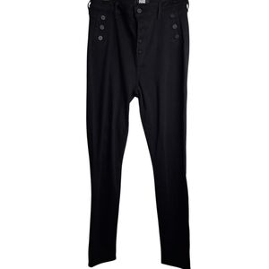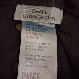Paige sleek high-rise jeans with a stylish button front. Perfect for versatile wear. Fits true to size, button fly closure with side buttons on the hips, tonal stitching and Paige logo, belt loops, 2 back pockets