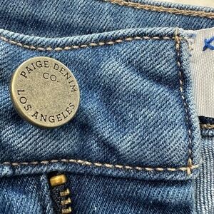 Experience the perfect blend of style and comfort with these PAIGE blue jeans, featuring a flattering flare and wide leg design. The rich indigo hue and subtle whiskering add a touch of sophistication, making them ideal for both casual and dressier occasions. Crafted with a hint of stretch, these jeans ensure a comfortable fit throughout the day.
