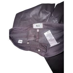 The PAIGE High Rise MUSE Coated Jeans in size 28” x 27” are a stylish and versatile addition to any woman's wardrobe. These black cherry colored jeans feature a solid pattern and a low rise fit, perfect for showcasing your favorite tops. The zip and button closure, along with the 5-pocket design, add both functionality and flair to these high rise jeans. Ideal for the winter, fall, or spring seasons, these Paige jeans are a must-have for any fashion-forward woman.