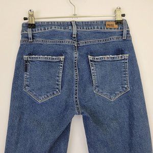 Women's Paige "Taylor" straight cropped jean, size 24. They are pre-owned, and are in overall excellent condition showing only light general wear / possible fading from wash. No defects or alterations.