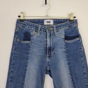 PAIGE High Rise Straight Crop Raw Hem Two Tone Denim Jean in Lyla