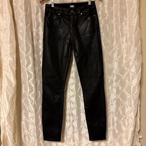 PAIGE Hoxton High Rise Ankle Skinny Jeans Black Fog Luxe Coating Faux Leather