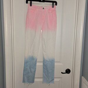 PAIGE Hoxton Slim Raw Hem Cut Off Cutoff Sunset Ombre High Waisted Jeans Pant 00