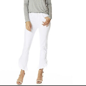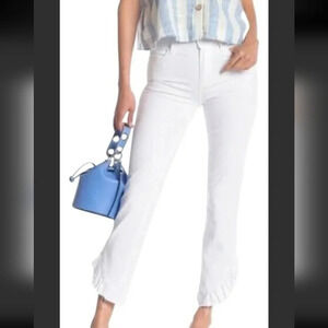 PAIGE Hoxton Straight Leg Ruffled Ankle Crop White Jeans Pants High Rise sz. 32