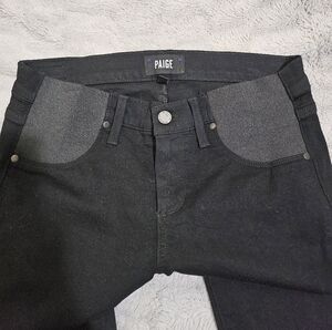 PAIGE Jeans Verdugo Ultra Skinny Jeans size 28, Black skinny jean featuring five-pocket styling and logo patch on back waist. Made from our most luxuriously soft TRANSCEND fabric. Using the latest performance fiber technology, this denim features an innovative formula that combines chic with comfort and won't stretch out no matter what. It has true denim appeal and moves with you all day. A super stretchy, mid rise, ultra skinny jean that grazes the ankle, making it perfect for showing off your favorite footwear. This pair comes in our best selling black wash. Laid flat measurements:, waist 15.5, rise 9", inseam 30.5", leg opening 5".