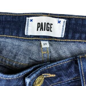 Blue wash denim jeans from Paige in size 29. There's intentional distressing at the knees as shown otherwise great used condition.