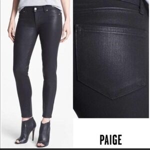 PAIGE Jimmy Jimmy Crop Black Silk Coated Ankle Skinny Jeans Size 25 NWOT