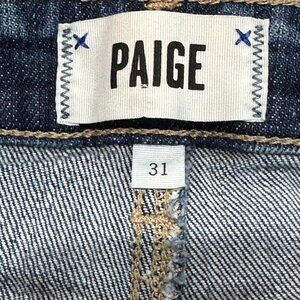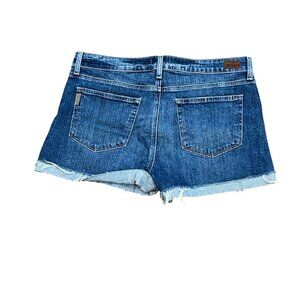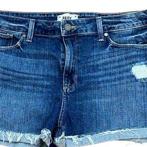 PAIGE Jimmy Jimmy Fabiola Destructed Cut Off Cuffed Denim Jean Shorts 31. These shorts are made of 98% Cotton, 2% Elastane. They measure Waist (lying flat) 17", Rise 10", Inseam 3". These shorts are in great, used condition. Ships from a Smoke Free Home. Any questions, please ask. All reasonable offers welcome.