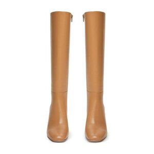 PAIGE Keely Tan Leather Knee-High Block Heel Boots, Side Zip Closure Size 10.5