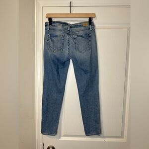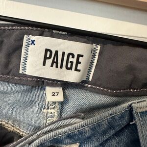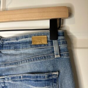 Stylish straight leg jeans by PAIGE. Light blue hue. Perfect for casual wear.