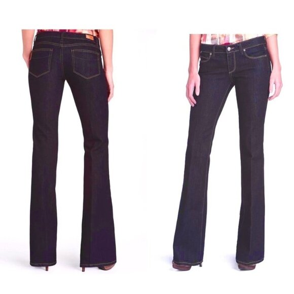 Super cool pair of Paige Laurel Canyon bootcut low rise jeans - size 26! Dark wash, 5 pocket, nice condition, 80% cotton, 19% polyester, 1% spandex.