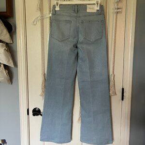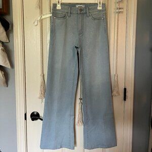 Stylish light blue flare jeans. Wide leg design. Perfect for casual wear.