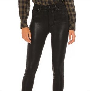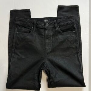 PAIGE Margot Jean Ankle Black Fog Luxe Coating Coated Pant Stretch Sz 28