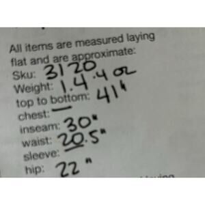 Rise: 8in / 20.25cm, Inseam: 29.5in / 75cm, Leg opening: 10.75in / 27cm