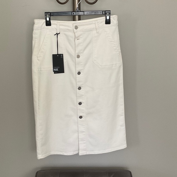 Paige off white midi skirt with button-down front. Timeless and versatile style. High quality material and goes with anything! Color on tag says Tonalecru