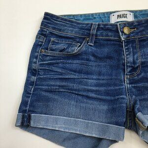 PAIGE Medium Wash 5 Pocket Logo Hardware JIMMY JIMMY Cuffed Hem Denim Shorts