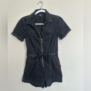 PAIGE Meg Short Sleeve Romper Black Denim Shorts Sz 2 Small