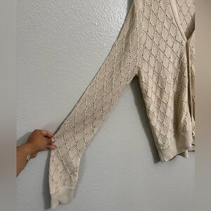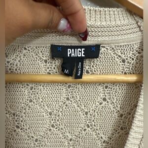 This chunky cotton linen blend cardigan is crafted with a portion of sustainably and ethically sourced cotton. In an off-white shade, this easy transitional piece is designed with a textured diamond stitch pattern and tortoiseshell buttons. The Perry Cardigan is part of PAIGE’s Eco-Evolution collection which is produced using eco-positive methods and modern technologies in an effort to reduce our environmental impact and carbon footprint
