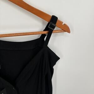 95% modal, 5% spandex. Made in China. Machine wash. Front button closure. Singular adjustable shoulder strap. Ribbed jersey fabric. Revolve Style No. PAIG-WK53. Manufacturer Style No. 7243C70-1086.