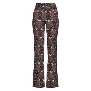 Shaped to a regular, straight leg silhouette that sits mid to high rise on the waist, adorned with a statement floral jacquard weave with hints of gold. Stretch woven trousers of 79% polyester, 19% rayon, 2% elastane. Button and zip fly fastening at front. Structured waistband, belt loops, two slip pockets at front, darts at back, two welt pockets at back, all over jacquard pattern. Lined. Approximately 10" Rise 34" Inseam 18" Leg opening. Color: Black Multi. Size 2 (XS or 25" waist - see chart). New with tags. Bought to wear to an event and ended up going with a different suit. No stains or damages, smoke-free home. Also selling the Paige Chelsee Velvet Blazer which would go really well with these! Reasonable offers accepted. *pics 1-7 stock, same pant pictured in additional colors for style reference only.