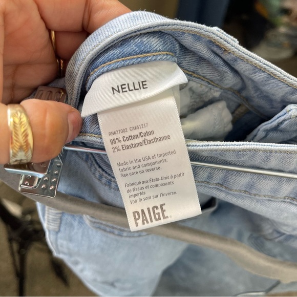 PAIGE Nellie light wash jeans natural raw hem, crop, wide leg. Button and fly closure.