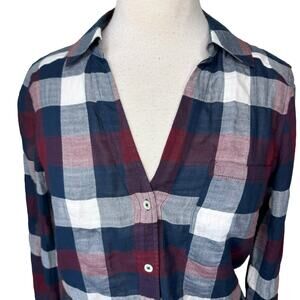 PAIGE Neve Button-Down Plaid Shirt Burgundy Size SMALL NWT
