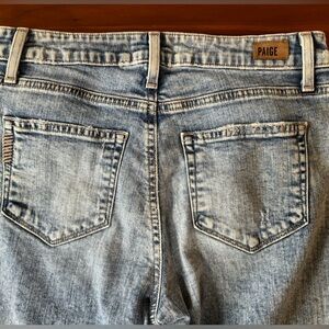 PAIGE Noella relaxed straight fit vintage denim jeans, slightly distressed as shown in photos.