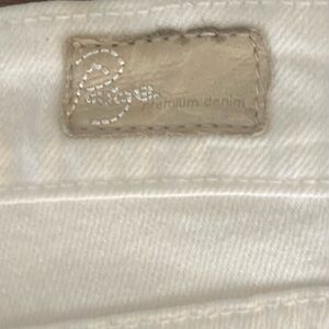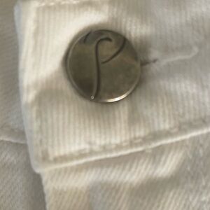 Paige Peg Skinny jeans. Crisp white jeans with zip and button closure, 5 pockets, tonal stitching, belt loop, and skinny leg. Small stain on the Paige inside label and two small dot stains on the waist-see pictures . Other than that the jeans are in excellent condition. Rise 8” and 28” inseam. Offers are welcome!