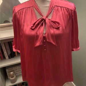 PAIGE Pink Puff Sleeve Tie Front Blouse