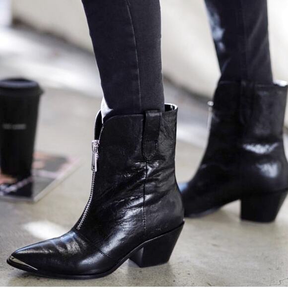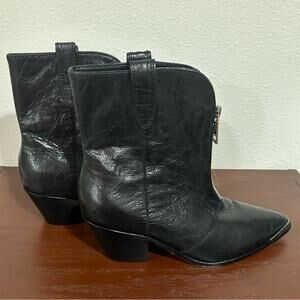 PAIGE Piper Black Leather Western / Moto Zipper Detail Booties Boots Size 9