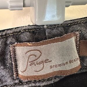 Experience timeless style with these PAIGE Premium Denim black high rise boot cut jeans. The subtle flare from the knee down adds a touch of elegance, making them perfect for any occasion. Crafted from medium-heavy weight denim, they offer a sleek and polished look.